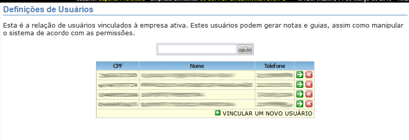 para selecionar um usuário já vinculado à firma.